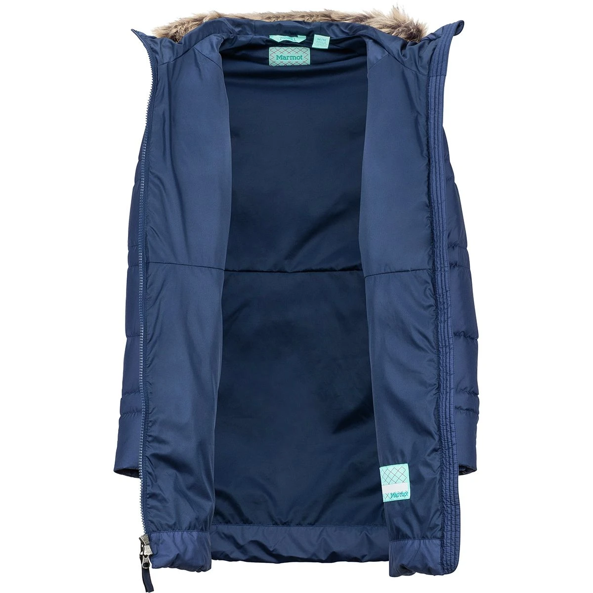 - Hood: insulated, removable faux fur trim